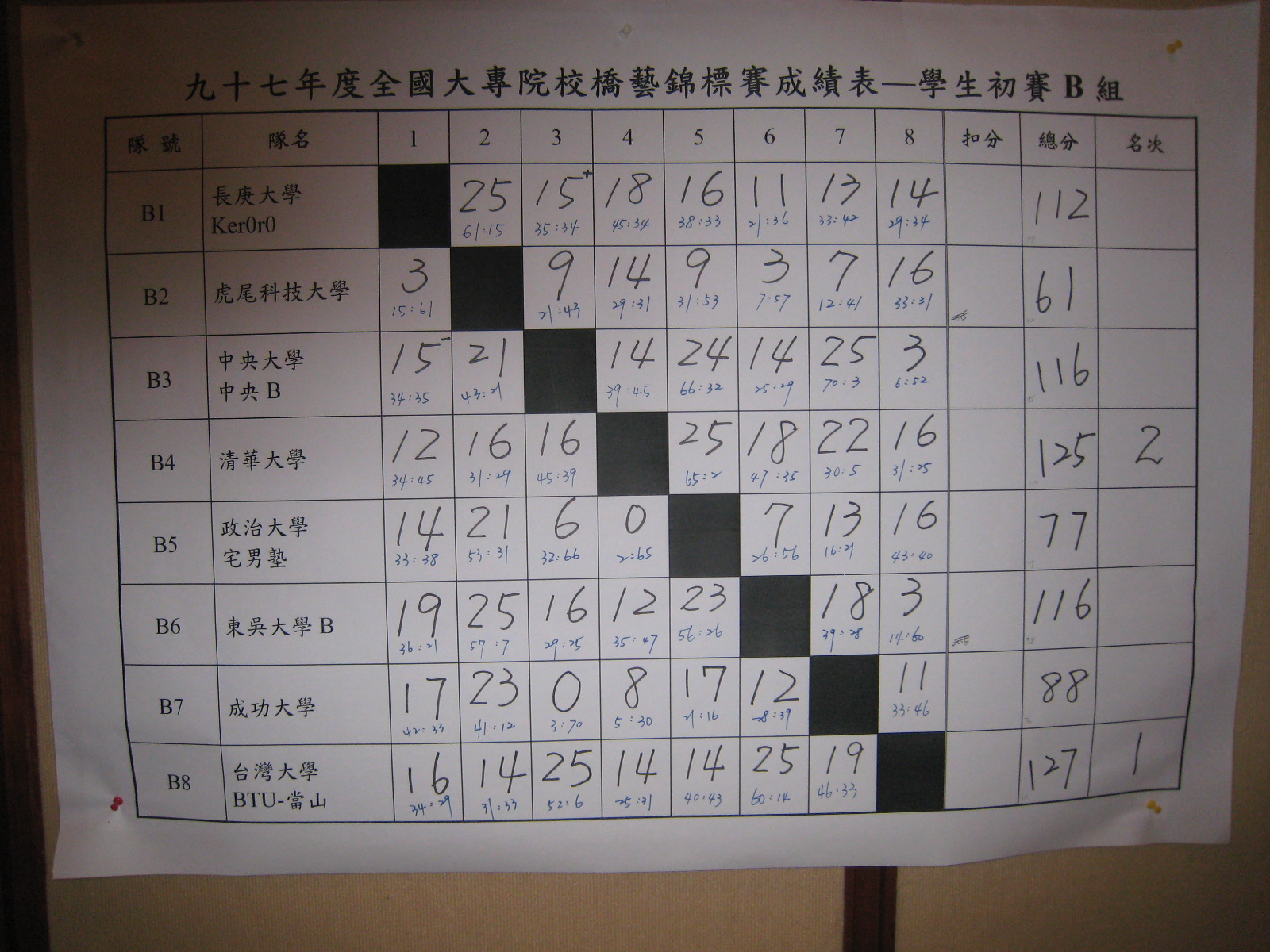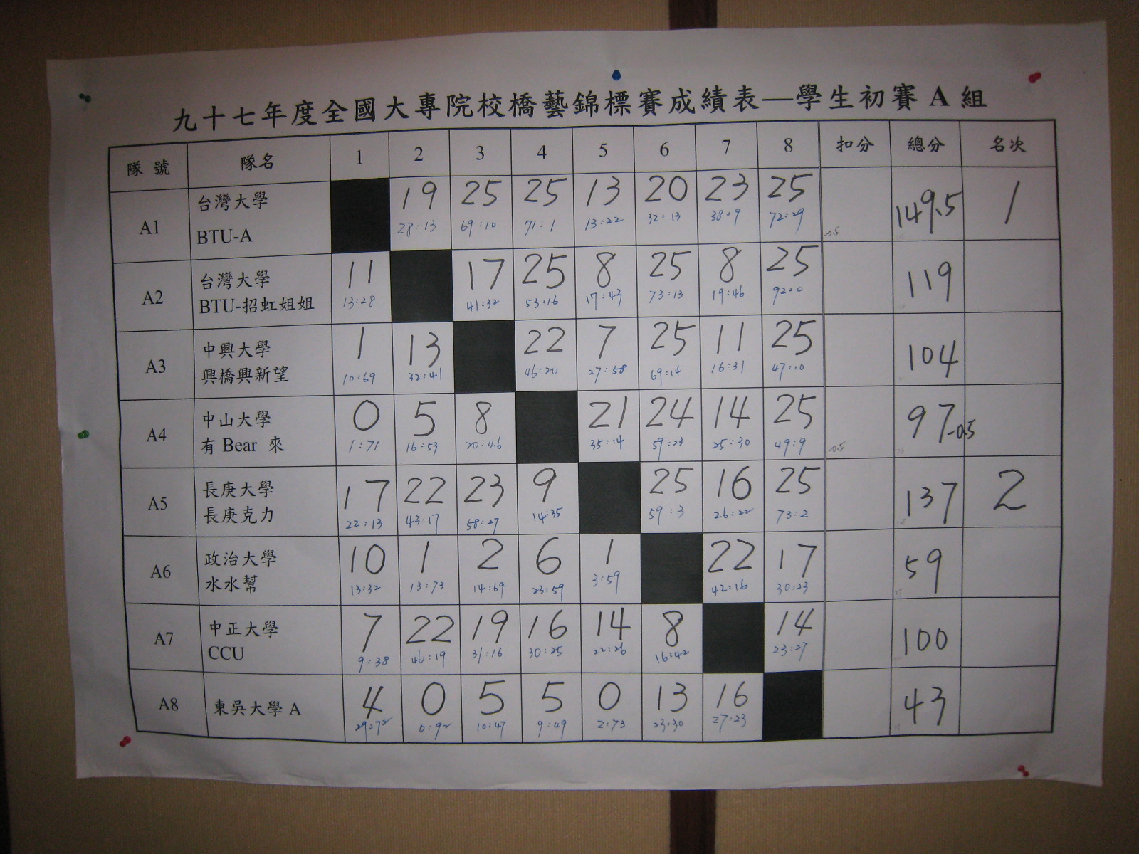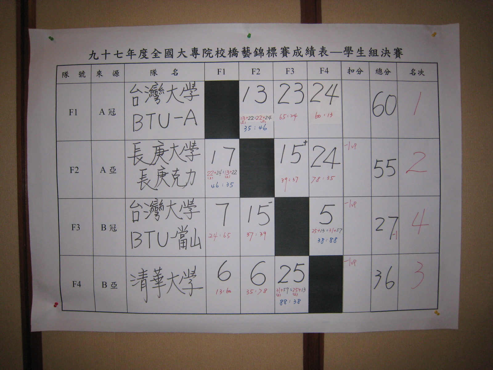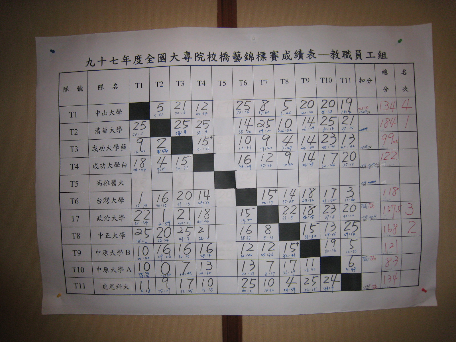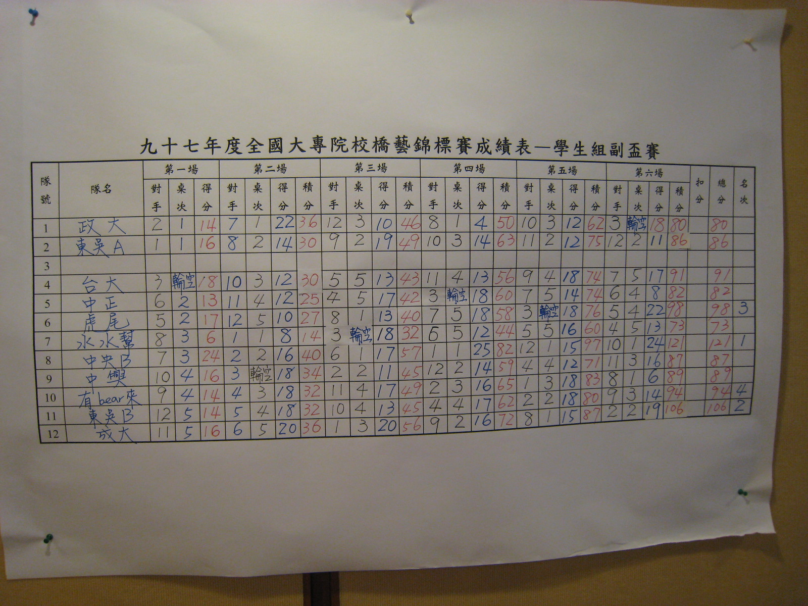 97年大專院校橋藝錦標賽(教職員工、學生)