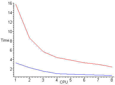 在一般情況之下 , N 顆CPU所計算的時間會是 1 顆的1/N倍 , 因